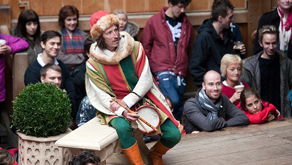 Постановка Королевского шекспировского театра выдержана в духе театра времени Шекспира: все актёры — мужчины; соблюдается классовость — зрители победнее все три часа проводят стоя и смотрят на ноги актёров, а зрители с достатком наслаждаются видом на сцену с балконов. Правда, если актёр или постановка не понравятся высокой публике, никого не казнят. Плохого актёра даже не закидают помидорами, ведь публика — истинные британцы.