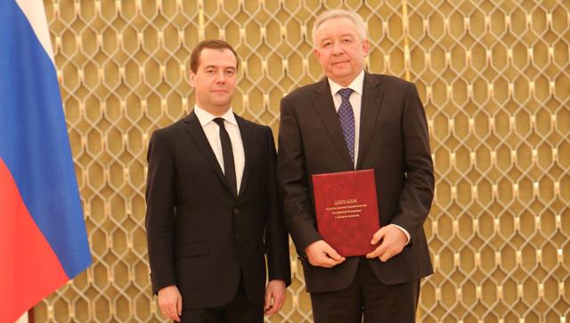 Диплом и награду генеральный директор ОАО «Протон-ПМ» Игорь Арбузов получил из рук председателя правительства РФ Дмитрия Медведева.