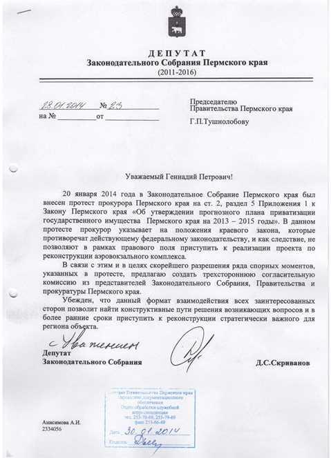 Депутат Законодательного собрания Пермского края Дмитрий Скриванов 30 января выступил с письмом в адрес краевого правительства, парламента и прокуратуры.