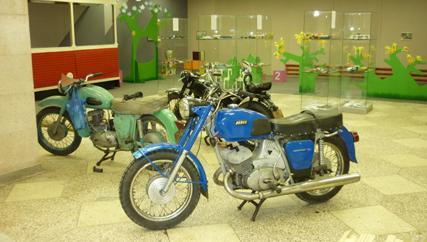 На выставке «Ветер в колёсах: из истории советского мотоцикла» представлены велосипеды, мопеды, мотороллеры, мотоциклы, которые выпускались в СССР, — более 50 подлинных экспонатов из частных коллекций и коллекции Пермского краеведческого музея. В их числе уникальный деревянный велосипед «костотряс», цирковой велосипед «Паук», советская легенда — мотоцикл «Урал», история которого началась в 1939 году, когда экономика СССР развивалась по программе предвоенного планирования.