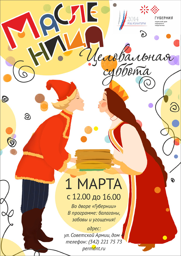 В первый день весны, когда многие только готовятся к Масленице, Пермский дом народного творчества приглашает на широкое городское гуляние с поцелуями и блинами.