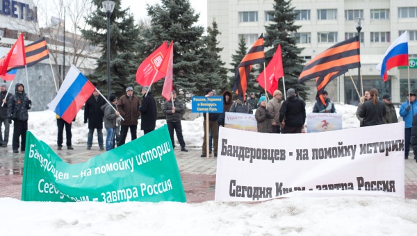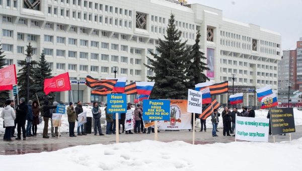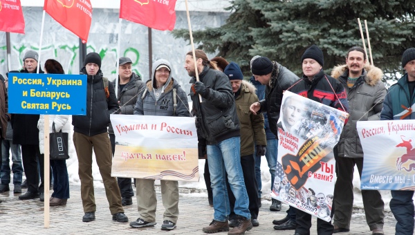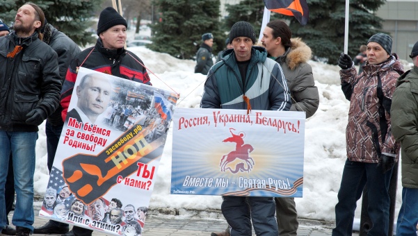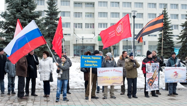 Митинг проходил под лозунгами: «Наша страна — наши правила!», «Россия, Украина, Беларусь — вместе мы святая Русь», «Россия и Украина — единый народ навеки», «Сегодня Россия — завтра Крым» и другими. Участники митинга развернули также большой транспарант с лозунгом «За Родину! За суверенитет! За Путина!» на фоне символики Национально-освободительного движения.