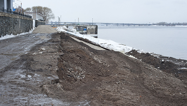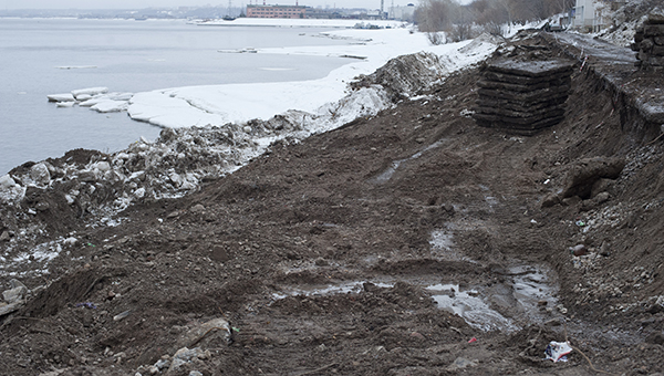 На участке от Речного вокзала до Мотовилихинских заводов идут работы по берегоукреплению. Заказчиком выступает МКУ «Управление строительством Перми».