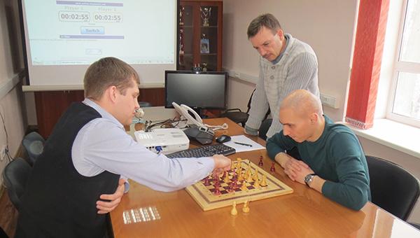 Побороться за звание лучшего шахматиста решились три сотрудника предприятия. Соревнования проходили по круговой системе с контролем времени: 5 минут каждому игроку до конца партии. Общее игровое время одного тура составляло 10 минут.