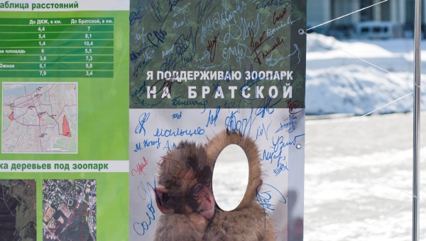 У памятника «Легенда о пермском медведе» активисты организации установили специальные стенды, где были представлены аргументы «за» по «против» эскизных проектов зоопарка на улице Братской и в Черняевском лесу, которые были разработаны испанским архитектурным бюро Amusement Logic.