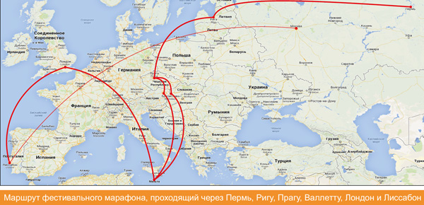 Марафон будет проходить по маршруту «Пермь — Лиссабон» и охватит девять городов. Подготовку и старт марафона, который состоится 12 июня, обеспечивает правительство Пермского края.