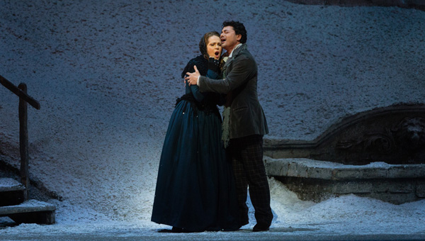 Классическая версия «Богемы» Пуччини в постановке Франко Дзеффирелли, выдержавшая рекордное количество представлений на сцене Метрополитен-опера, блистает с новым, молодым составом исполнителей. Итальянский тенор Витторио Григоло поёт партию страстного поэта Рудольфа, Кристина Ополайс дебютирует в Мет в роли его умирающей от чахотки возлюбленной Мими. Сюзанна Филипс исполняет роль легкомысленной Мюзетты, а Массимо Кавалетти — художника Марселя. За пультом — начинающий свою карьеру дирижёр Стефано Ранцани.