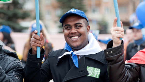Большую праздничную колонну составили студенты и работники учреждений профессионального образования, средних и высших учебных заведений Перми. С творческими выступлениями прошли по Октябрьской площади участники общественной организации «Российские студенческие отряды».