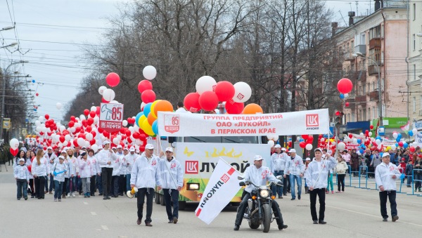 Демонстрация началась в 11:00. Свои колонны представили «Сибур-Химпром», «Уралхим», РЖД, Машиностроительный завод им. Дзержинского, «Морион», «Новогор-Прикамье», Пермский завод силикатных панелей, кондитерская фабрика «Пермская» и другие предприятия. К ним присоединились представители коммерческих и финансовых структур, некоммерческих и общественных организаций, средств массовой информации.