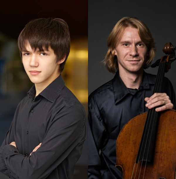 Солисты: лауреат международных конкурсов Александр Кутузов (фортепиано) и обладатель Первой премии и Золотой медали XIII Международного конкурса им. Чайковского Сергей Антонов (виолончель).