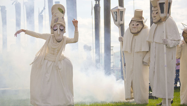 Люди на ходулях управляют куклами-марионетками, разыгрывая трогательную и забавную историю о любви и свободе. После спектакля зрители могут познакомиться с артистами поближе, сфотографироваться с ходулистами и куклами.
