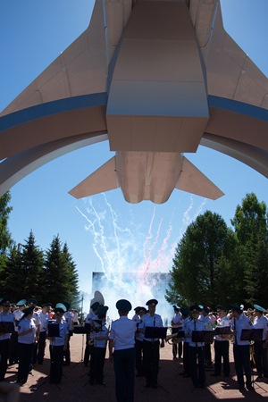 Ключевым моментом торжества было открытие памятника «МиГ на взлёте» в сквере на углу улицы Чкалова и Комсомольского проспекта.