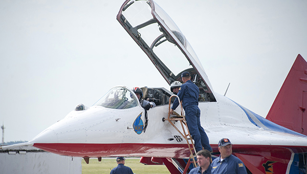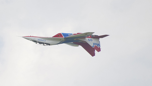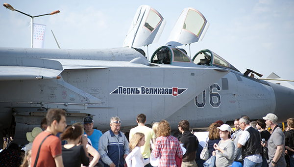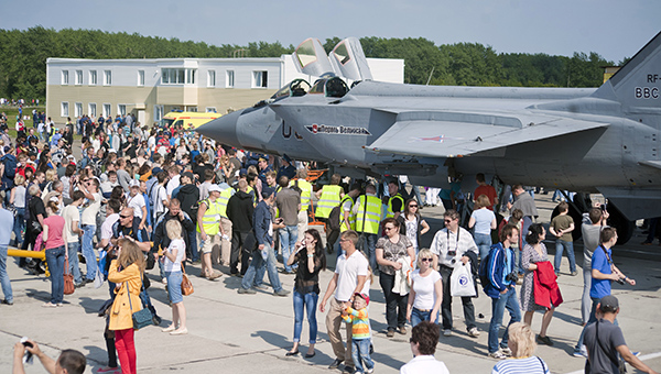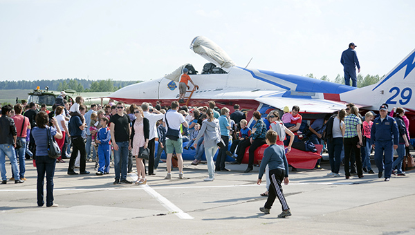 Показ в небе начался со стремительного пролёта пары самолетов Су-24 авиабазы Шагол (Челябинск). Вторыми в небо поднялись хозяева аэродрома — лётчики «Сокола» на истребителях МиГ-31. МиГи с рёвом прошли парой несколько раз, продемонстрировав слаженность полёта и боевую мощь истребителей. Бурю эмоций вызвало выступление «Стрижей». Пятёрка асов выполнила в небе две программы — солист Дмитрий Селиванов показал 10-минутное выступление, а четвёрка лётчиков выступила с получасовым групповым пилотажем.