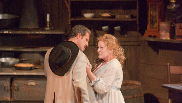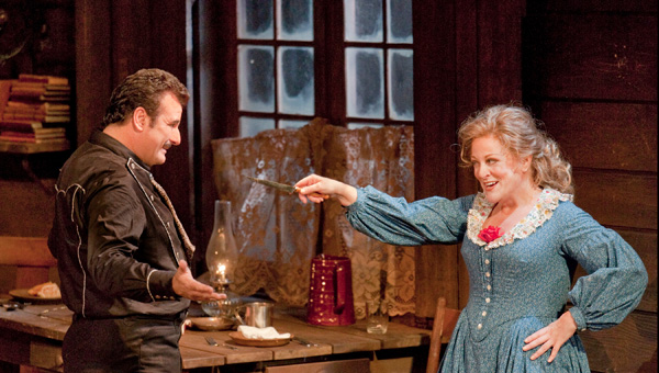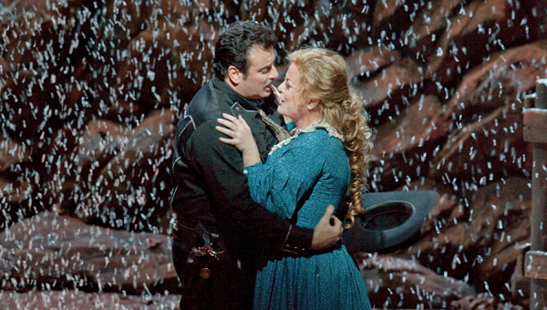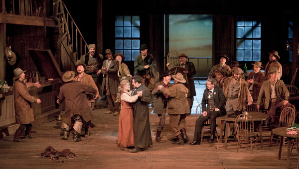 «Девушка с Запада» — наглядный пример того, что можно «впрячь в одну телегу коня и трепетную лань»: единственная попытка скрестить жанр лирической оперы с настоящим вестерном превосходно удалась Пуччини. В центре истории прекрасная девушка, романтический незнакомец и доблестный шериф. Настоящий Дикий Запад с его салунами, золотоискателями, индейцами, бандитами, погонями, пальбой из револьверов и непременной счастливой развязкой возникает на сцене Мет в постановке Джанкарло дель Монако.