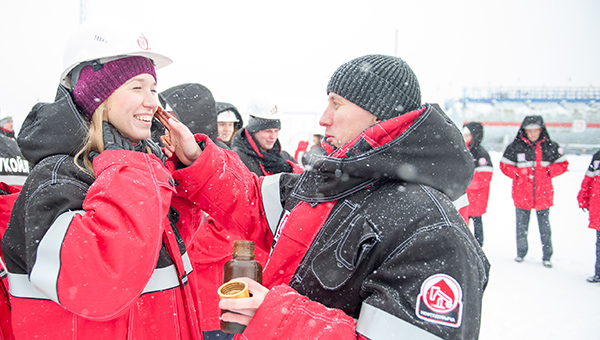 В цехе молодые нефтяники символически испачкали друг друга нефтью. Также впервые в этом году был организован тимбилдинг по типу игры «Форт «Боярд».