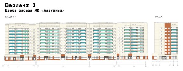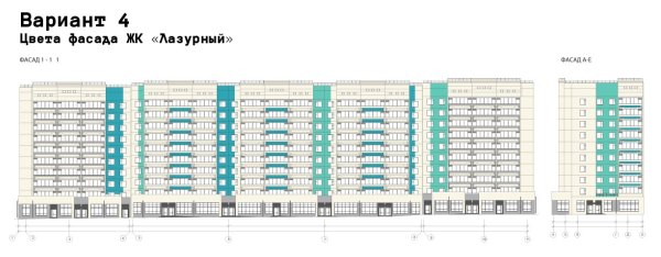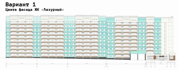Открыто голосование за варианты оформления фасада первого дома ЖК «Лазурный», возводимого в микрорайоне Вышка-2 на ул. Целинная, 55.