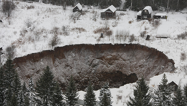 Воронка в Соликамске достигла размеров 50 на 60 м