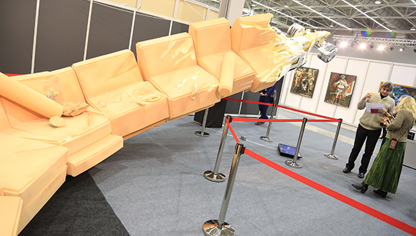 Актуальное искусство на «Арт-Перми» представлено в единственном экземпляре, зато каком масштабном! Музей современного искусства PERMM выставил грандиозную работу Сергея Шеховцева «Иллюзия». Объект, изготовленный из поролона, представляет собой уютный диван с ноутбуком и чайной чашкой, который постепенно превращается в болид «Формулы 1» и буквально взлетает в воздух! Очень многозначительная, но в то же время прозрачная аллегория.