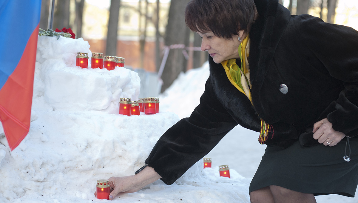 Обстановка была очень спокойной и даже возвышенной. Некоторые женщины произносили скорбные списки с тюльпанами в руках: на работе их поздравили с Международным женским днём. Был лишь один маленький инцидент: вдруг появился агрессивно настроенный гражданин с портретом Сталина, но полицейские, охранявшие место проведения акции, быстро и аккуратно его завернули.