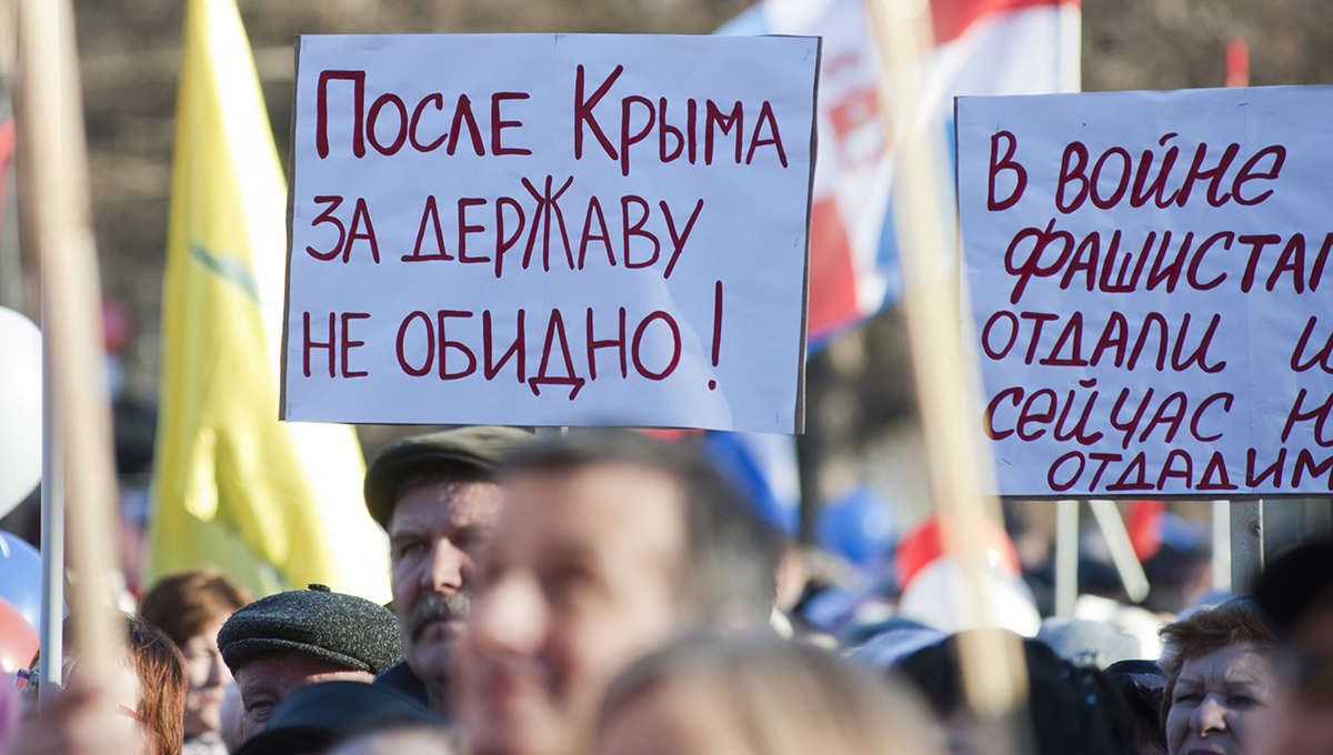 «Возвращение Крыма — торжество справедливости» — гласили плакаты участников мероприятия