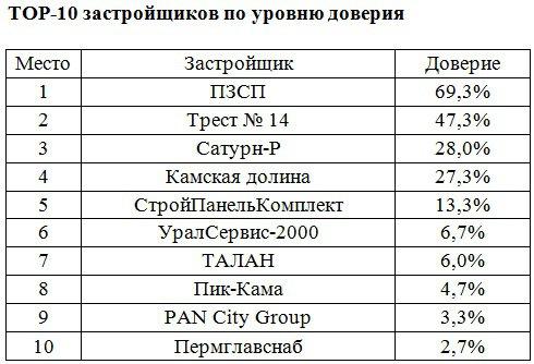 Межрегиональное маркетинговое агентство «Лаборатория СМИТ» определило самых известных надёжных застройщиков Перми. В феврале 2015 года во всех районах Перми социологи провели поквартирный опрос, в котором участвовали более 1 тыс. горожан.
