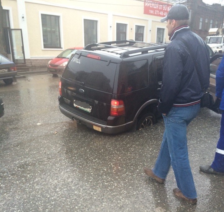 В Перми 9 апреля на улице Н. Островского внедорожник Ford Explorer провалился задним правым колесом под асфальт. Фотографии инцидента опубликовал в социальной сети «Вконтакте» один из очевидцев.