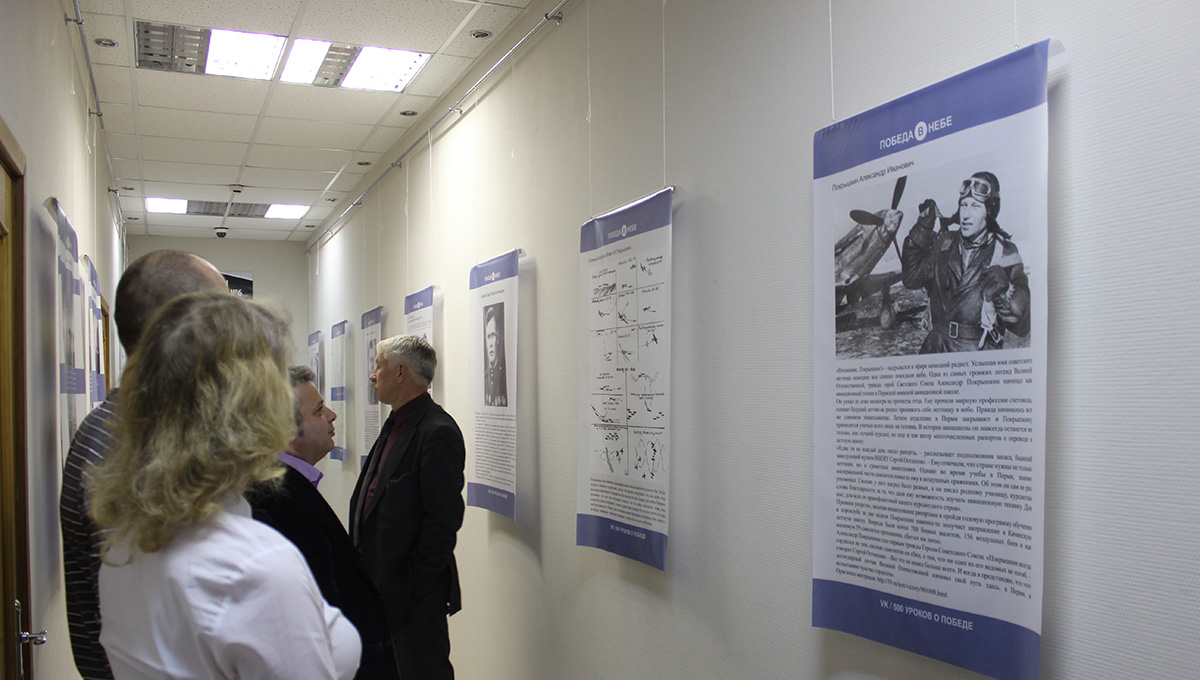 В киноцентре «Премьер» открылась выставка «Победа в небе», на которой представлено 20 постеров, стилизованных под социальную сеть «ВКонтакте». На них изображены фотографии пермских лётчиков-героев и военных самолётов. Под иллюстрациями есть небольшие описания. Один из экспонатов выставки — это подлинная бомба времён Второй мировой войны.