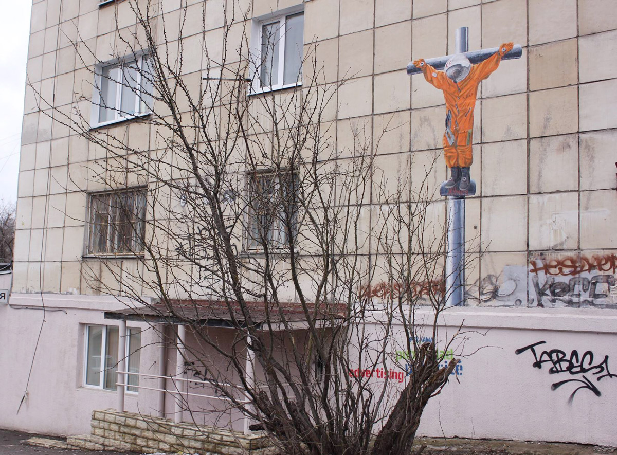 Как рассказал «Новому компаньону» пермский стрит-арт-художник Александр Жунёв, 22 апреля его допросили в прокуратуре по поводу изображения с распятым на кресте Гагариным.