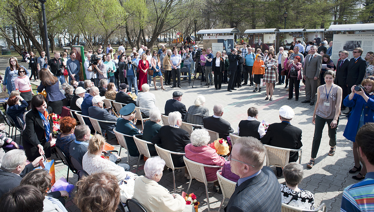 На вернисаже под открытым небом 5 мая собралась изрядная толпа, на удивление пёстрая: городские чиновники перемешались с праздной весенней публикой, радующейся теплу, толпами школьников и ветеранов. Возгласы в толпе были исключительно восторженные: и по поводу качества фотографий, и по поводу текстов, их сопровождающих, и по поводу замысла в целом.