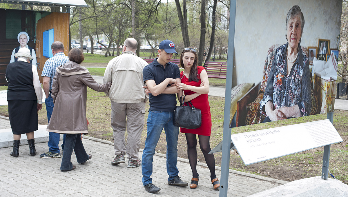 Каждый портрет на аллее сопровождается небольшой выдержкой из прямой речи героя: редакторы старались выбрать самые трогательные фрагменты из личных историй, записанных интервьюерами. Полностью истории можно прочитать на специальном сайте, там же и фотогалерея, хотя, конечно, в сквере она смотрится интереснее.