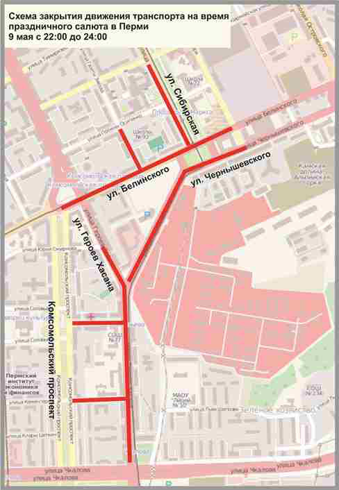 В связи c проведением праздничных мероприятий в честь 70-й годовщины победы в Великой Отечественной войне будет ограничено движение транспорта в центре города, а также в Кировском, Орджоникидзевском, Мотовилихинском и Свердловском районах. Изменит свою работу и общественный транспорт.