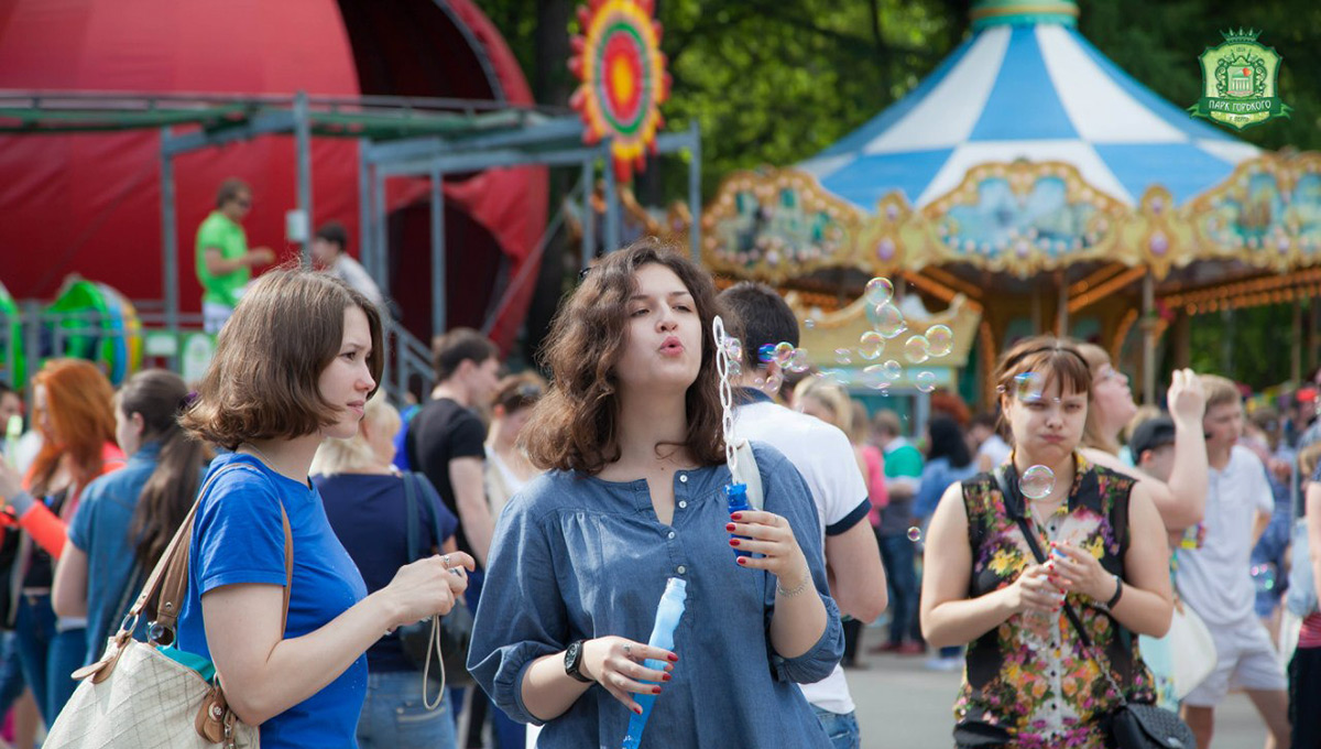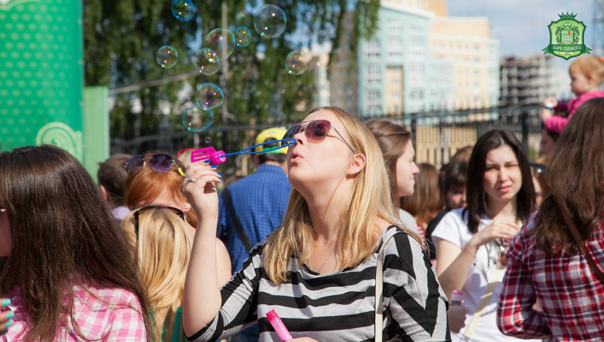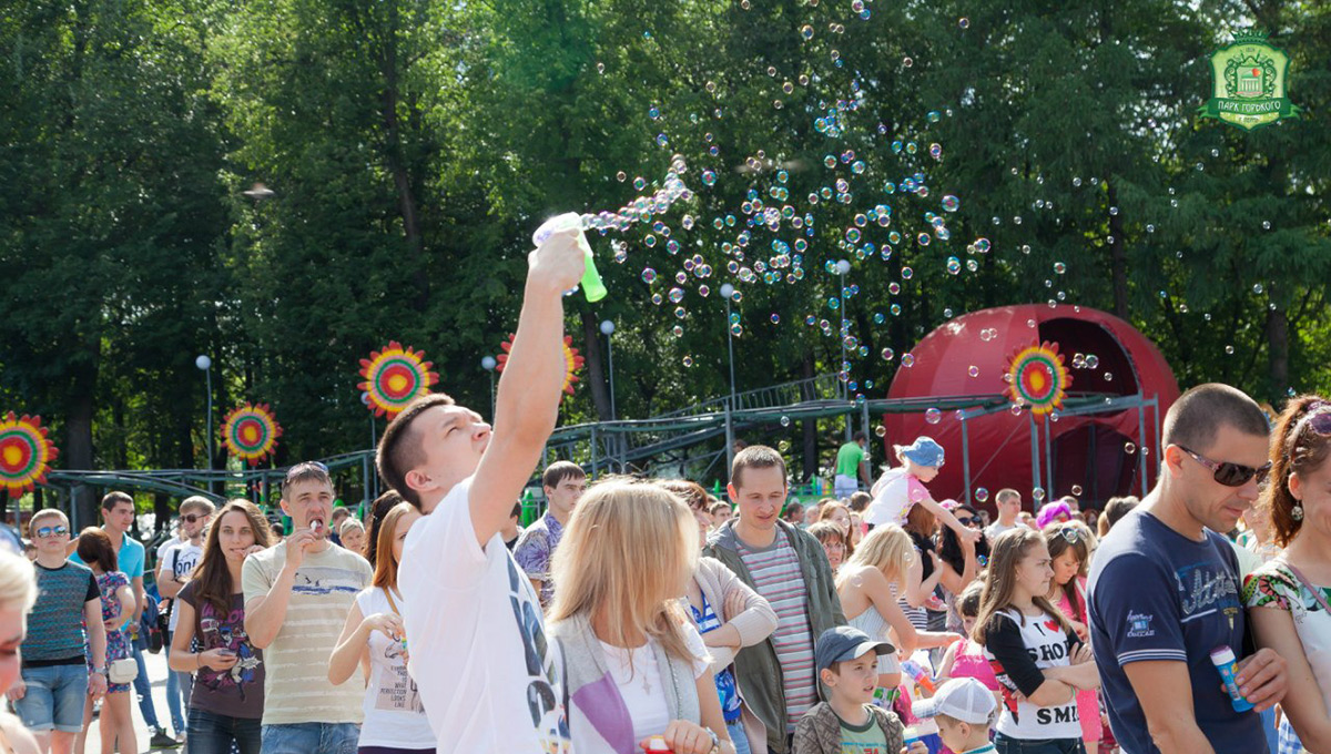 День мыльных пузырей в парке Горького — один из самых массовых и позитивных праздников летнего сезона. Здесь можно увидеть пузыри всех форм и размеров и невероятные яркие костюмы.