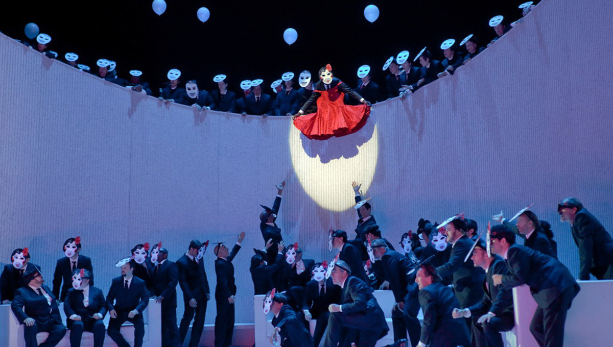 Опера Верди в постановке The Metropolitan Opera, дирижёр — Фабио Луизи, режиссёр — Вилли Деккер.