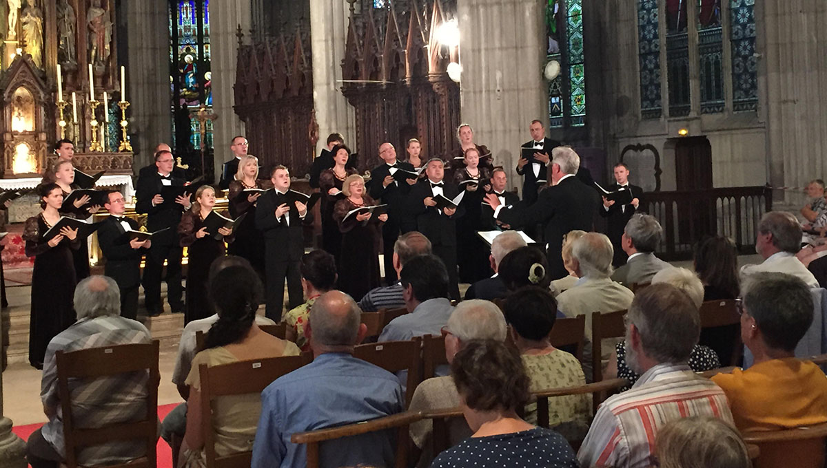 Хор исполнял музыку великих русских композиторов С. С. Рахманинова и Г.В. Свиридова в Базилике Святого Апра — самом старом готическом храме города (Святой Апр был епископом города Туля в 6 веке и проповедовал святое Евангелие. Он был патроном первого церковного прихода в Нанси). Эта церковь считается одной из самых богато декорированных церквей в Нанси. Базилика славится интересными витражами, их в церкви насчитывается больше 70. Венская мебель украшает интерьер базилики, а орган работы мастера Жозефа Мерклена был даже премирован на Всемирной парижской выставке 1867 года. С тех пор на нем играли многие выдающиеся органисты Франции.
