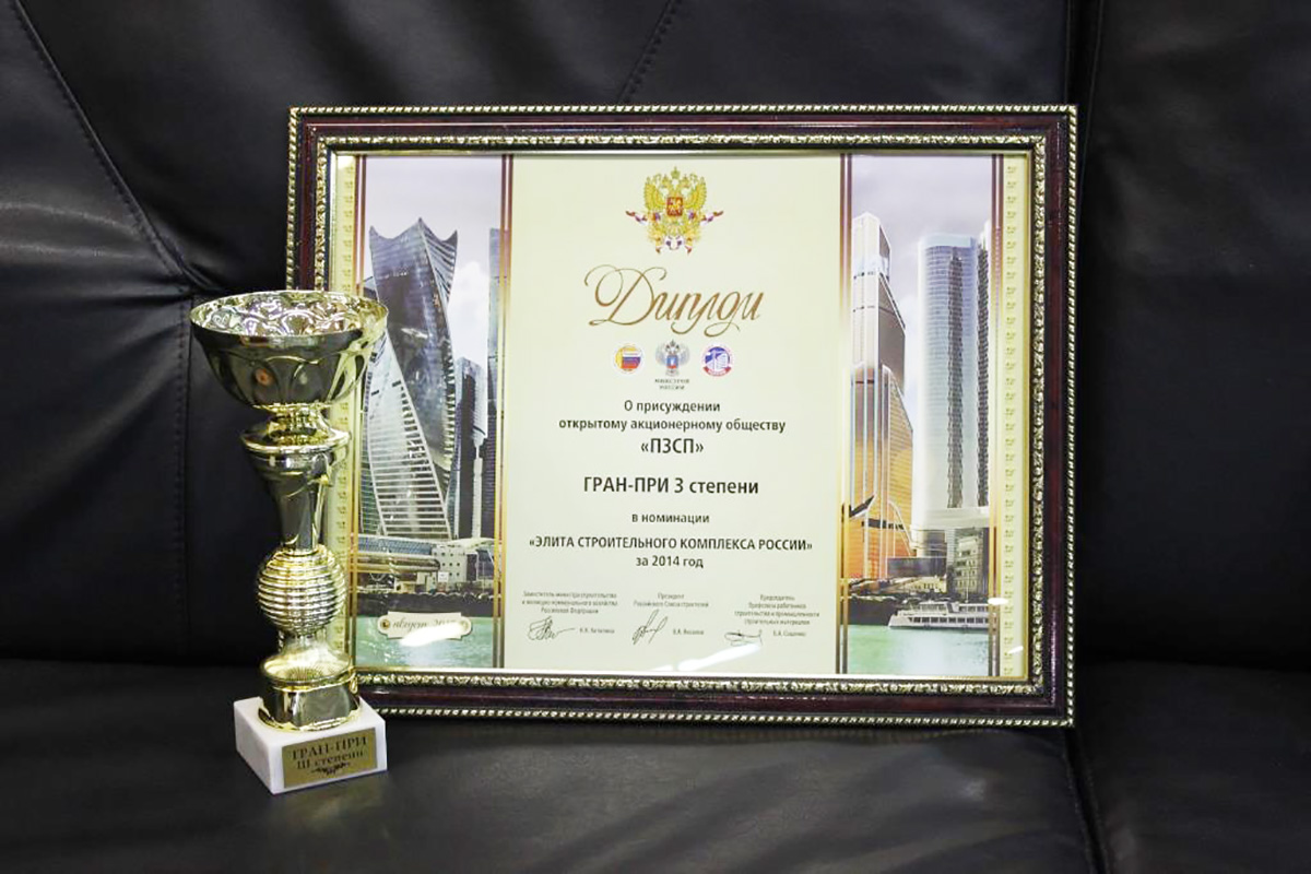 По итогам XIX Всероссийского конкурса на лучшую строительную организацию, предприятие стройиндустрии и промышленности строительных материалов за 2014 год — ОАО «ПЗСП» признано победителем, получив соответствующий приз — Гран-При III степени и звание «Элита строительного комплекса России». Торжественная церемония награждения лучших строительных организаций страны состоялась 5 августа в Москве.