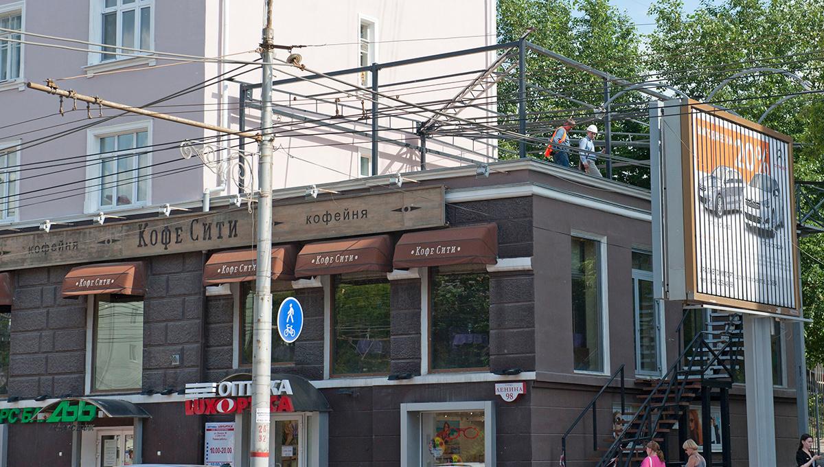 В ситуацию вмешались также депутаты гордумы, которые обратились в мэрию с просьбой проверить законность размещения некоторых коммерческих объектов на улицах города, в том числе на ул. Ленина, 98.