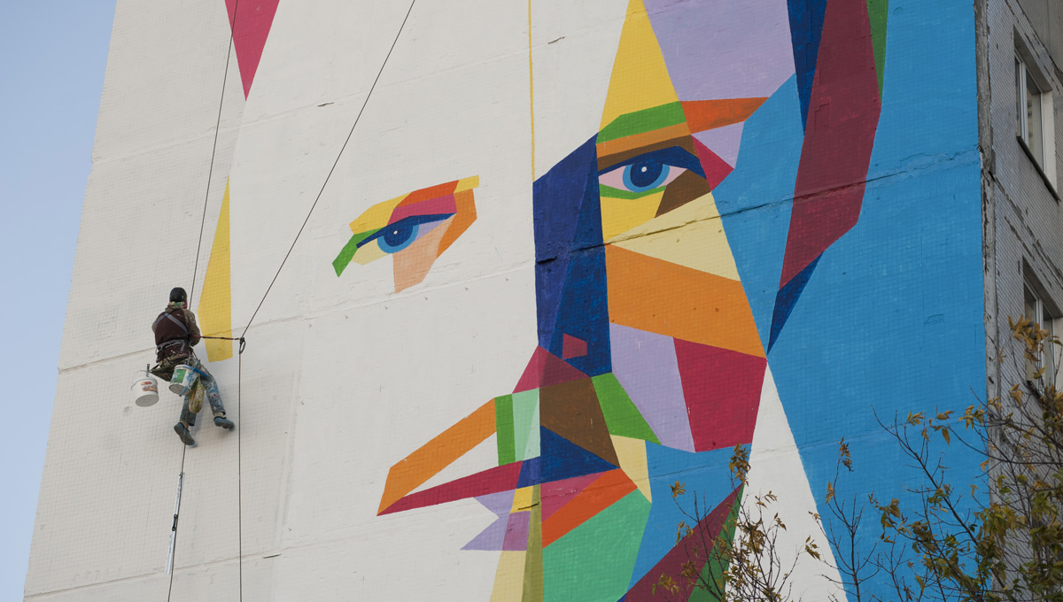 Пермский стрит-арт художник Александр Жунёв работает над созданием масштабного граффити на фасаде жилого дома в микрорайоне Парковый. Проект «Стена почёта. Василий Каменский» выиграл грант в конкурсе социально значимых проектов «Город — это мы», а недостающие средства на создание граффити помогли собрать около сотни неравнодушных к этой теме пермяков.