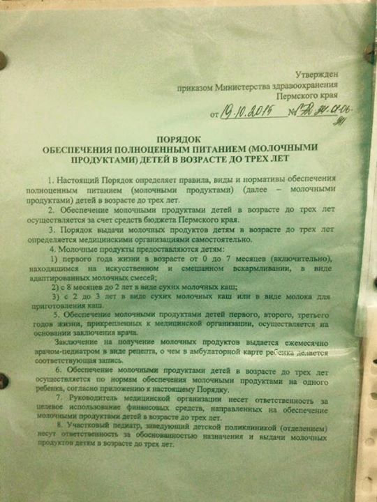 Эту информацию уточнили в министерстве здравоохранения Пермского края. С 2016 года закрываются не пункты выдачи молочной продукции (молочные кухни), а изменится порядок обеспечения детей в возрасте до трёх лет молочными продуктами.