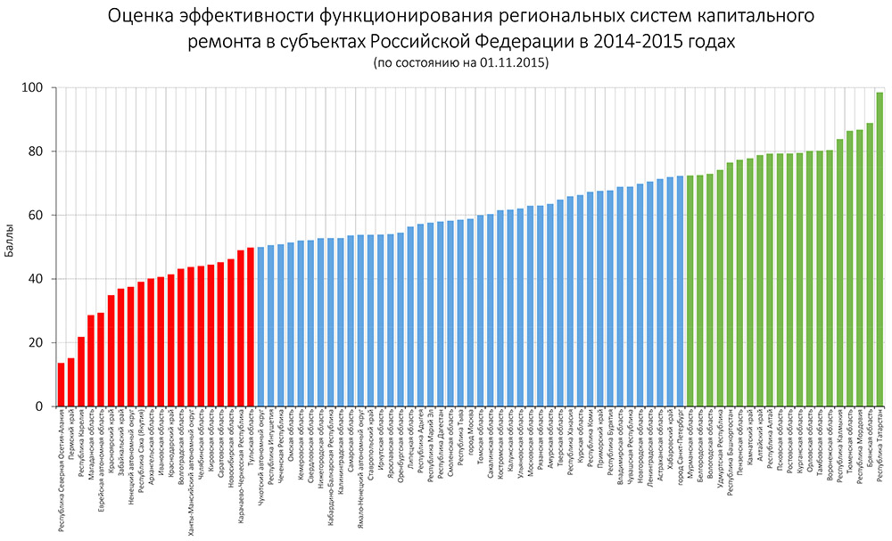 Однако, согласно оценке эффективности функционирования региональной программы капитального ремонта, по состоянию на 1 ноября 2015 года Пермский край оказался в аутсайдерах. Регион оказался на предпоследнем месте, опередив только Республику Северная Осетия — Алания.