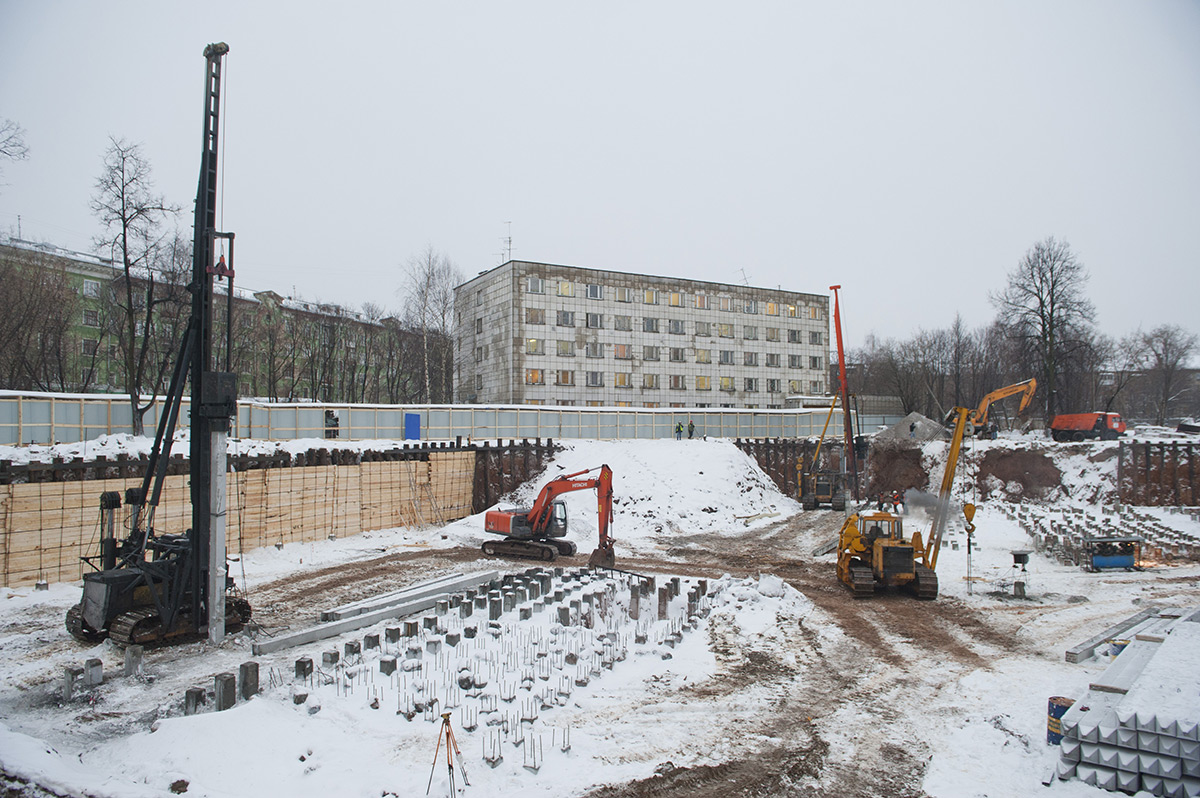 Участники церемонии поставили автографы на свае, после чего кран перенёс её к котловану, и строительство жилого комплекса началось.