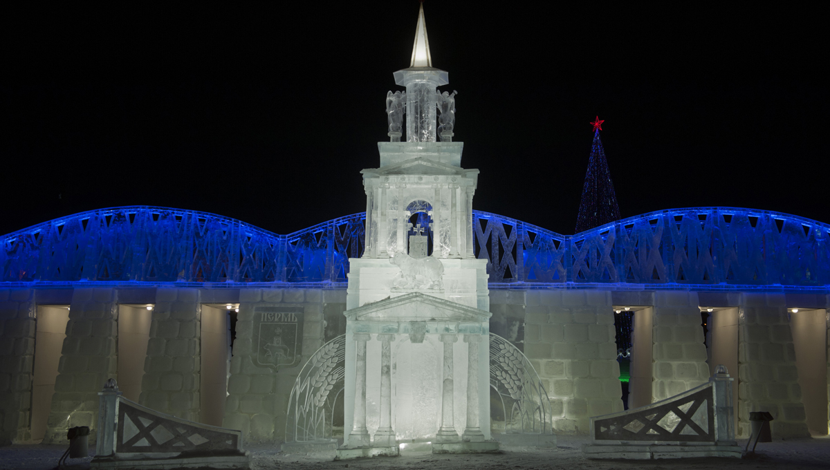 Вся эта красота богато подсвечена: Алексей Тютнев гордится современными технологиями, которые фонд «Единение» впервые в России применил для подсветки льда именно в Перми.