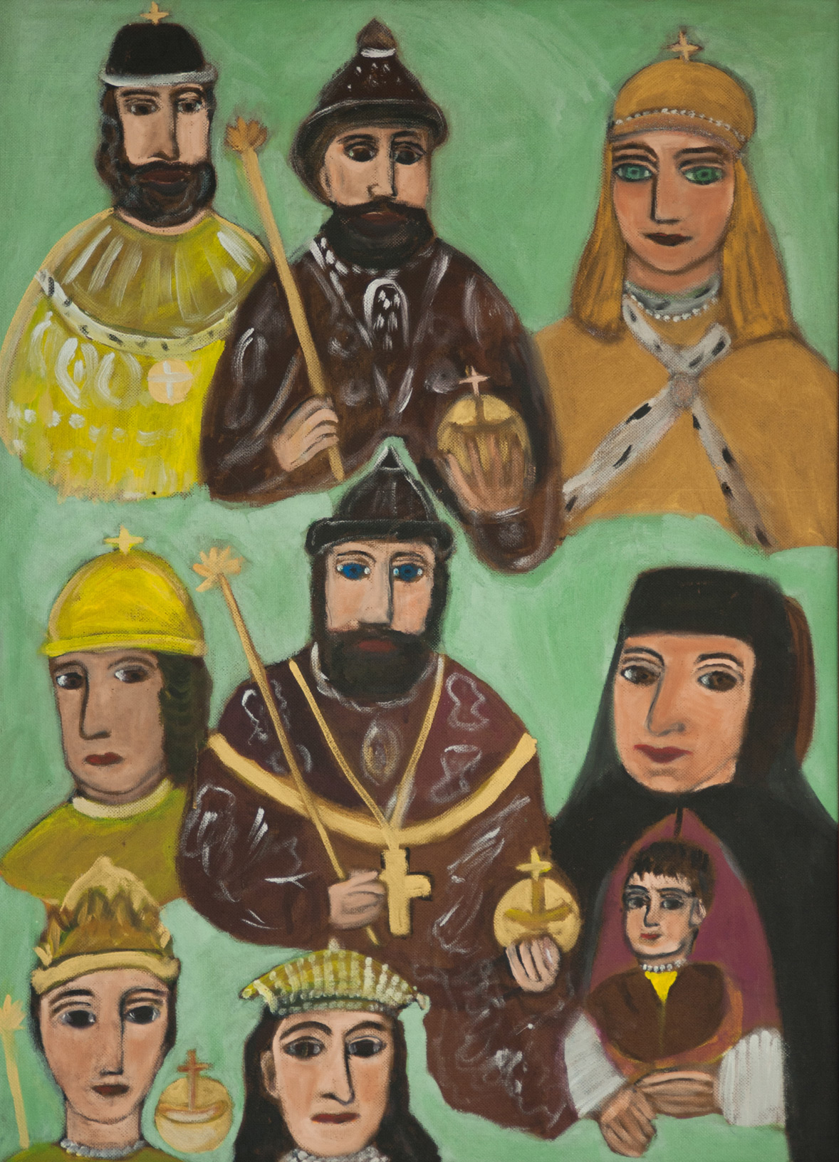 Год назад Анна почти полностью прекратила писать картины из-за проблем с рукой. А потом произошло что-то чудесное: переборов себя и собственные недуги, она начала творить с небывалым рвением. В 2015 году она создала несколько новых работ, причём новых принципиально: они куда крупнее и сложнее многих её ранних полотен, в них впервые использованы аппликация и коллаж. Все они представлены на этой выставке и посвящены истории дома Романовых.
