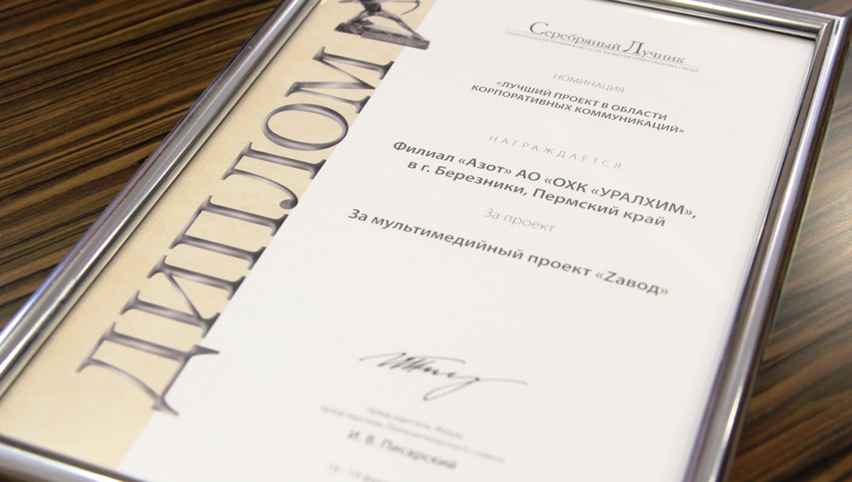 Мультимедийный проект «Zавод» филиала «Азот» АО «ОХК «УРАЛХИМ» вошёл в тройку призеров XIX Национальной премии в области развития общественных связей «Серебряный Лучник».
