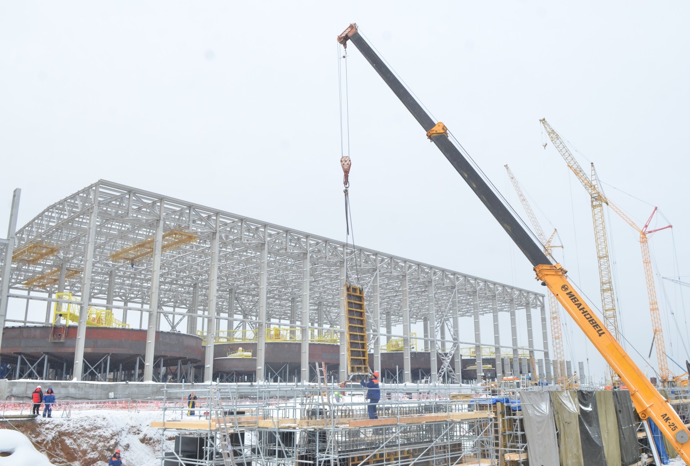 Продолжается строительство поверхностного комплекса: обогатительной фабрики, складов руды и готовой продукции, административно-бытовых зданий, железной дороги, объектов энергообеспечения и другой инфраструктуры комбината.