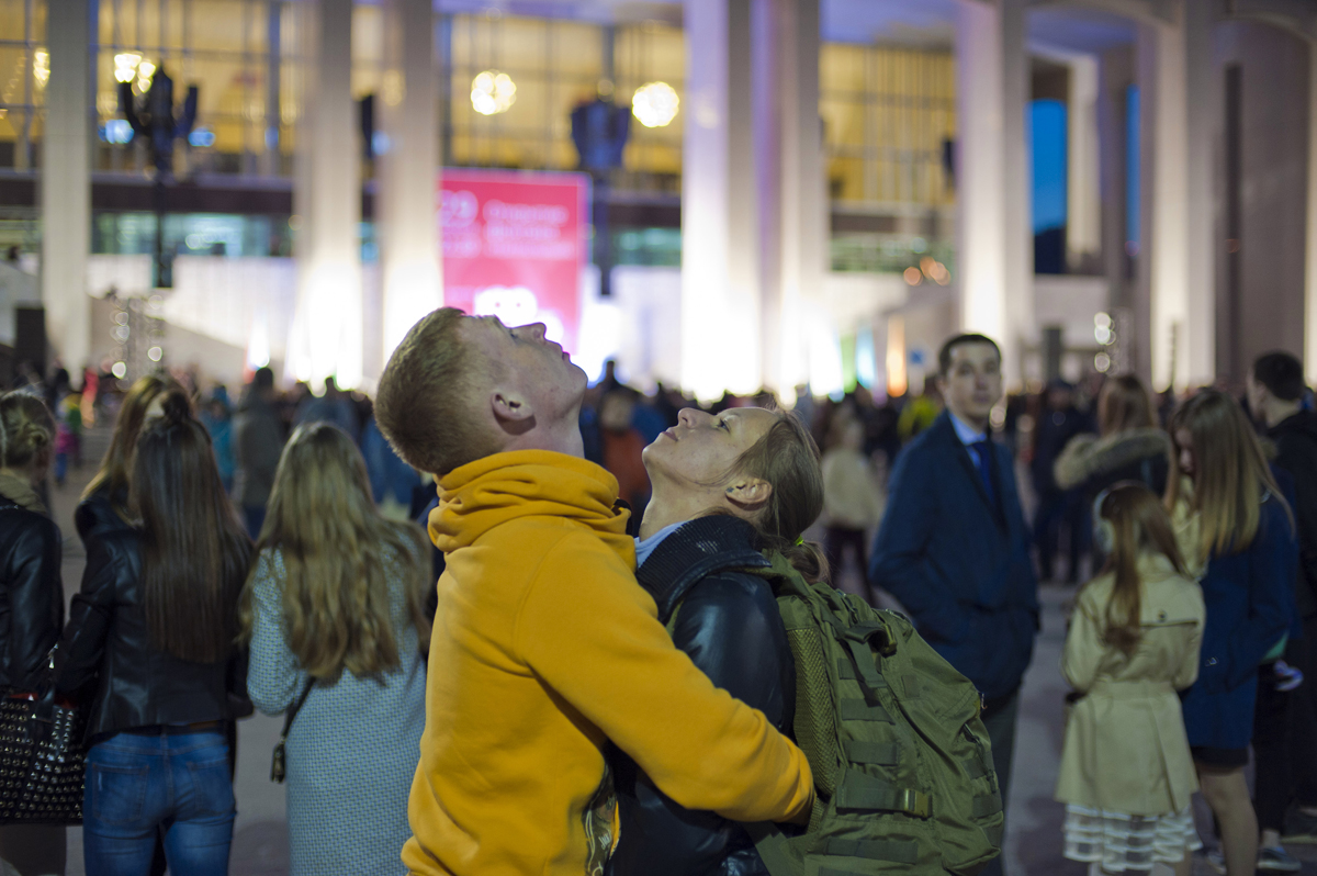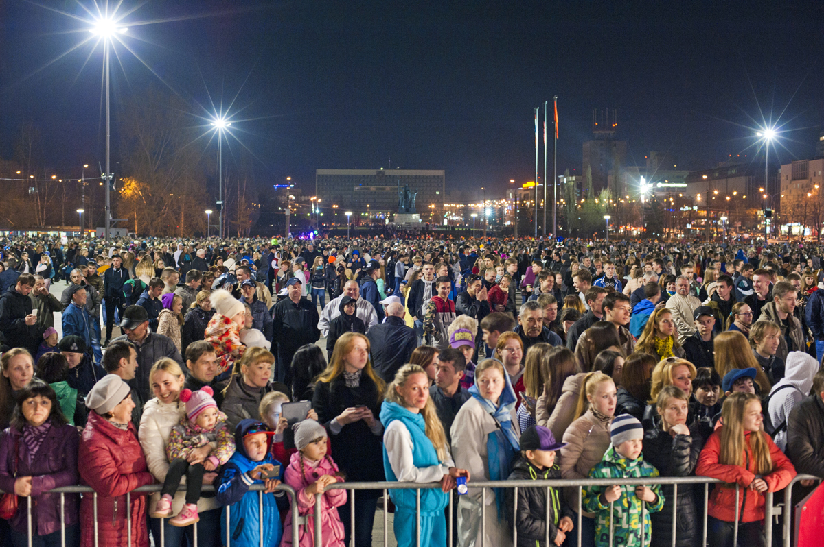 Тысячи пермяков собрались на площади у Театра-Театра 29 апреля поздним вечером на открытие главного городского фонтана.