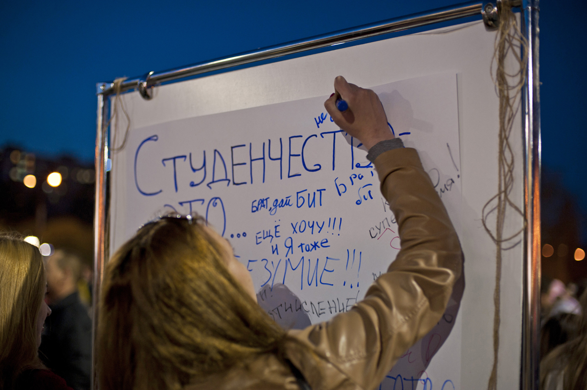 Так, коллектив театральной студии ПТАХ, работающей в ПГНИУ, показал свой перформанс. Все желающие могли сфотографироваться с талисманом университета — учёным котом. Сводный хор студентов пермских вузов исполнил знаменитый «Гаудеамус», ну а поздравил жителей не только глава Перми Игорь Сапко, но и проректор ПГНИУ Дмитрий Красильников.