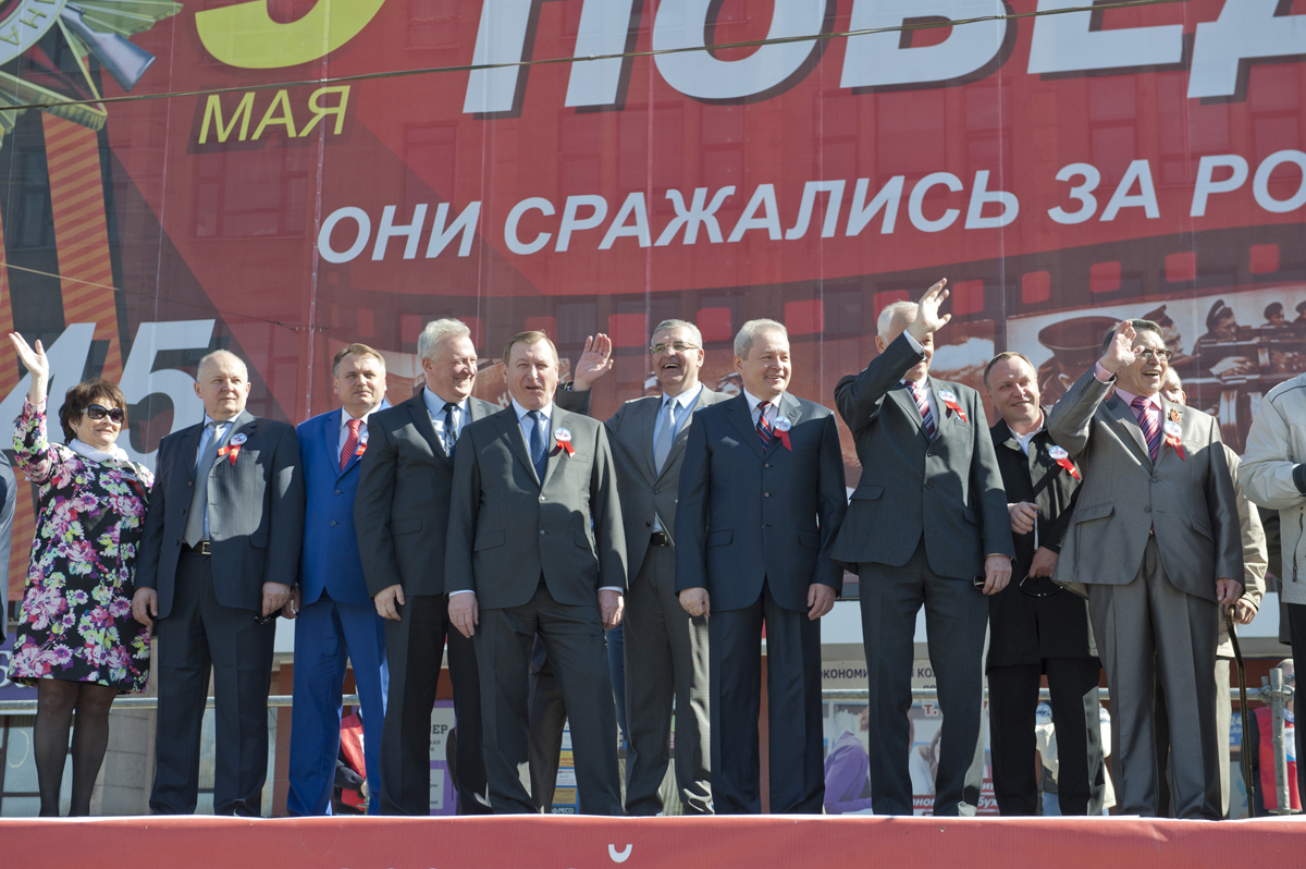 А одной из первых колонн на Октябрьскую площадь вышла горадминистрация во главе с её руководителем Дмитрием Самойловым и мэром Перми Игорем Сапко. С трибуны их приветствовал губернатор Пермского края Виктор Басаргин.