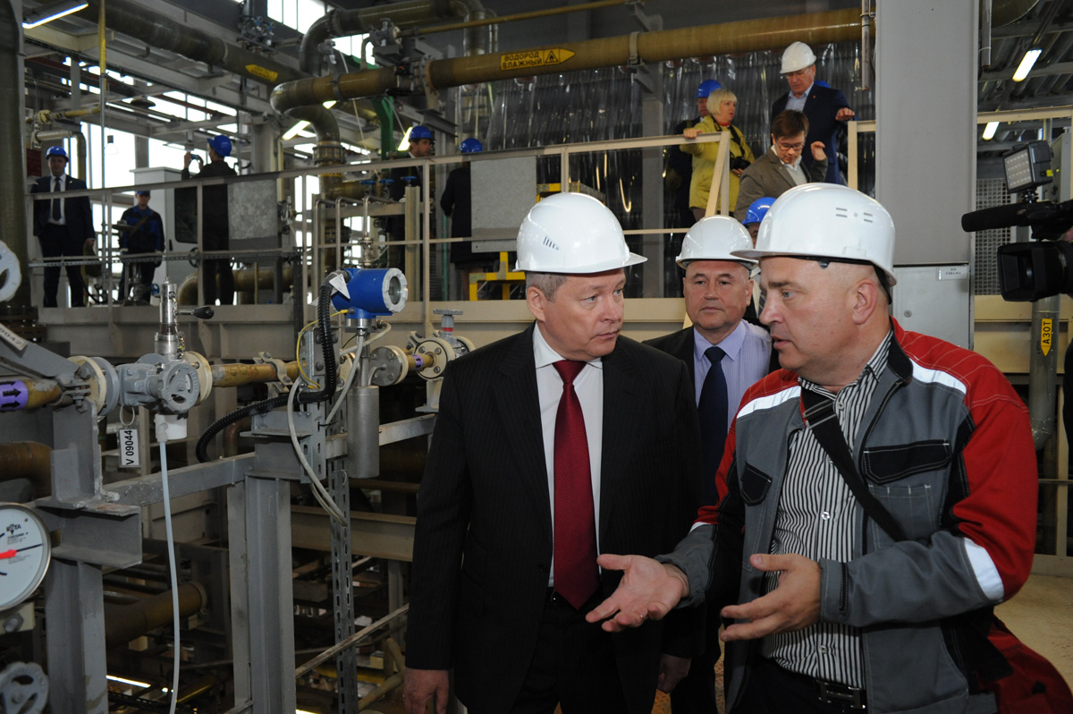 Губернатор Пермского края Виктор Басаргин в рамках рабочей поездки в Верхнекамье посетил «Соду-Хлорат» в Березниках, где дал старт работе новой линии по производству хлора и кали едкого методом мембранного электролиза.