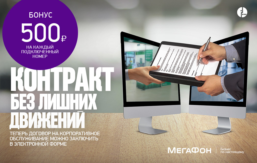 — Оптимизируя расходы и время, бизнес-сообщество всё больше переходит на электронный документооборот. Учитывая этот тренд, мы разработали новый сервис. Чтобы подключить мобильную связь для компании, не обязательно приезжать в офис «МегаФон» с пакетом документов и ожидать оформления — это можно сделать удалённо, с помощью электронной подписи. Компании, заключившие онлайн-договор на мобильную связь в период с сентября по ноябрь, получат бонусом 500 руб. на каждую подключённую SIM-карту.