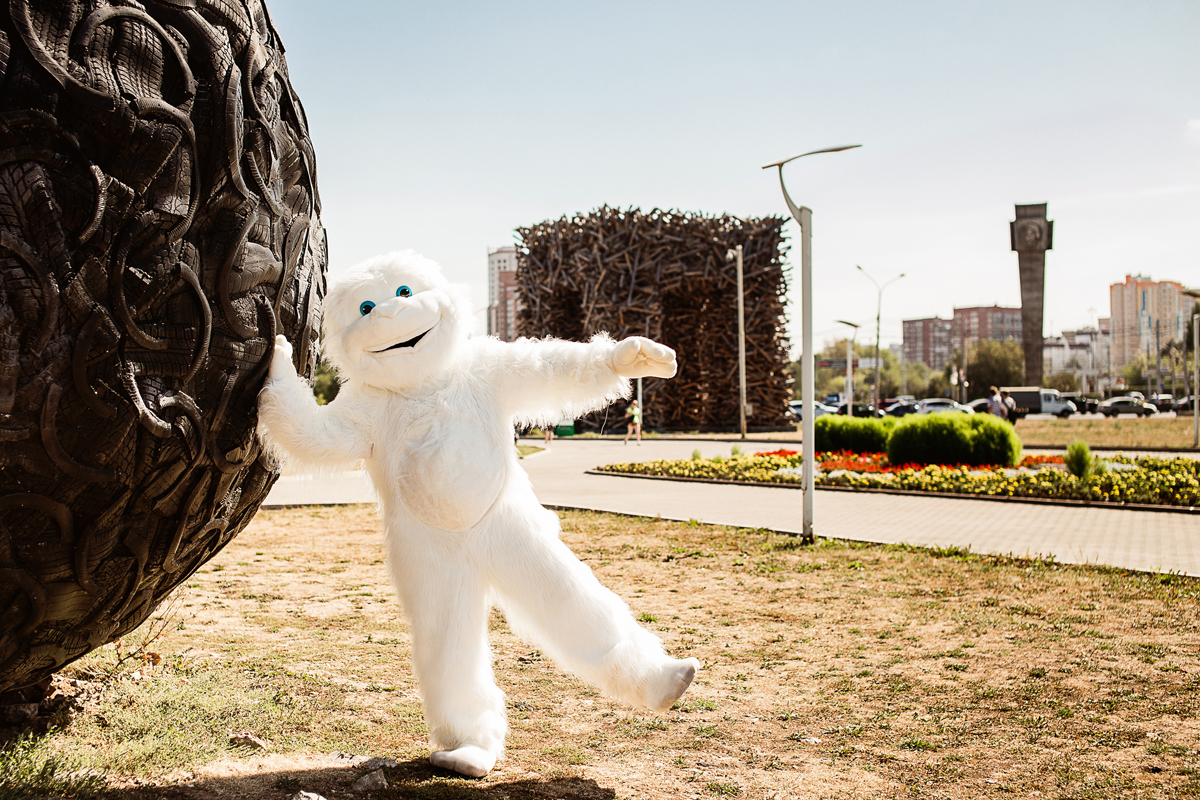 Последней точкой знакомства Йети с Пермью стал наш пляж. Люди дружелюбно просились сфотографироваться со снежным человеком, которому было очень жарко в пермские 30 градусов.